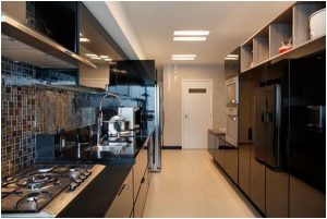 Na cozinha, em que a maior parte das paredes é tomada por armários, optar por móveis com acabamento preto envernizado pode ser uma boa ideia para deixar o ambiente mais moderno e iluminado. Isso porque o verniz aplicado no móvel reflete muito bem a iluminação, fazendo com que a superfície do móvel se pareça quase com um espelho. O mesmo princípio pode ser aplicado, por exemplo, em um quarto, em que o armário ocupe uma parede inteira.